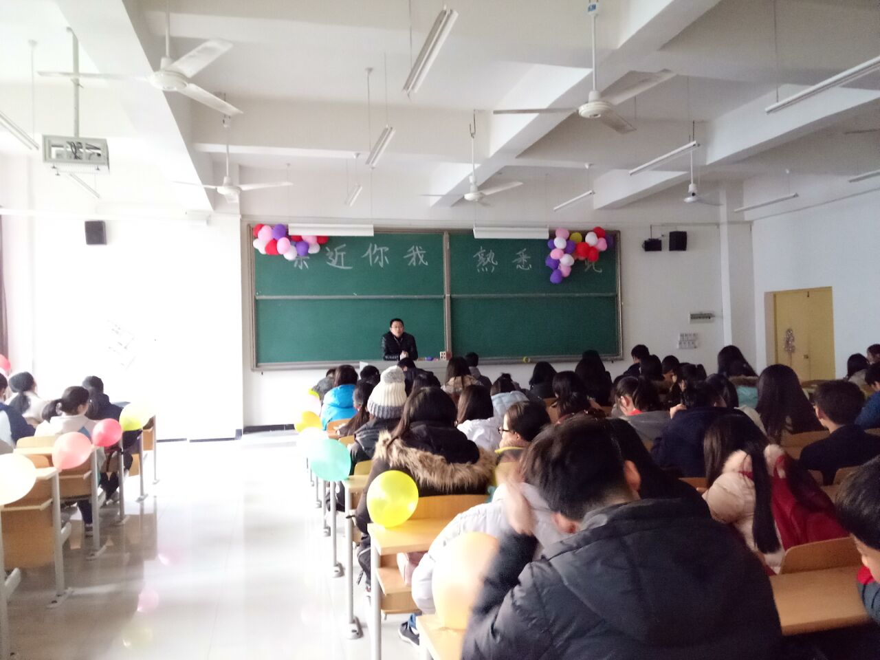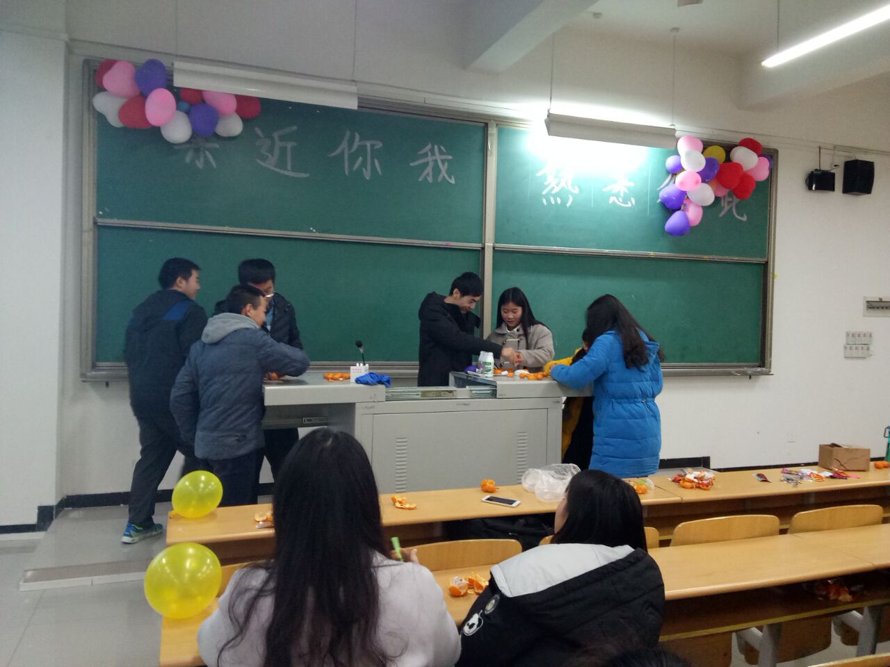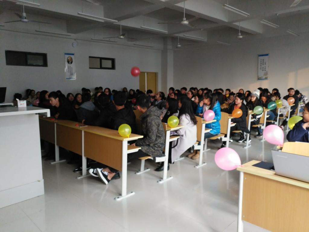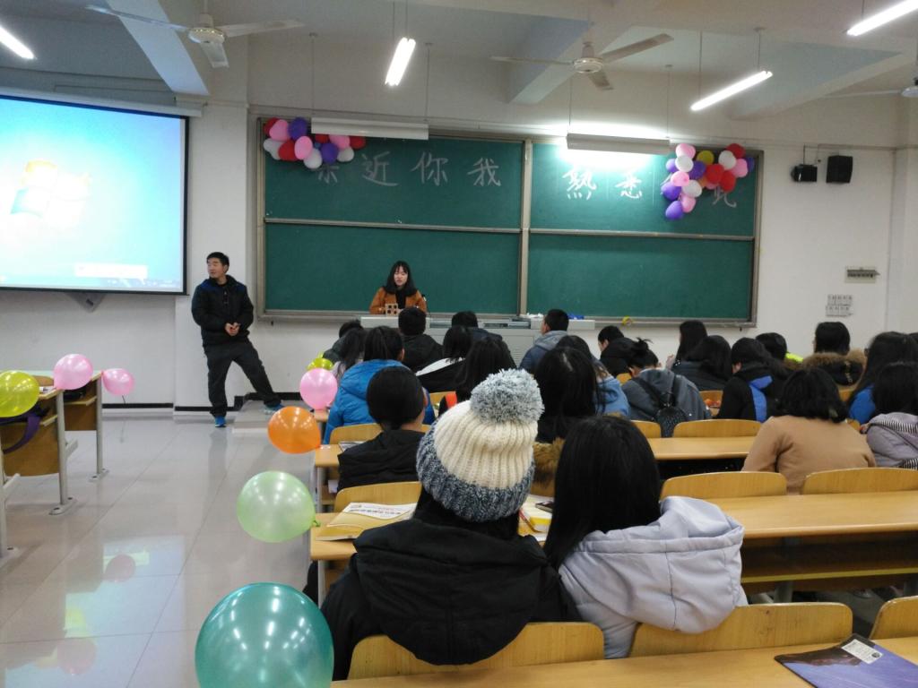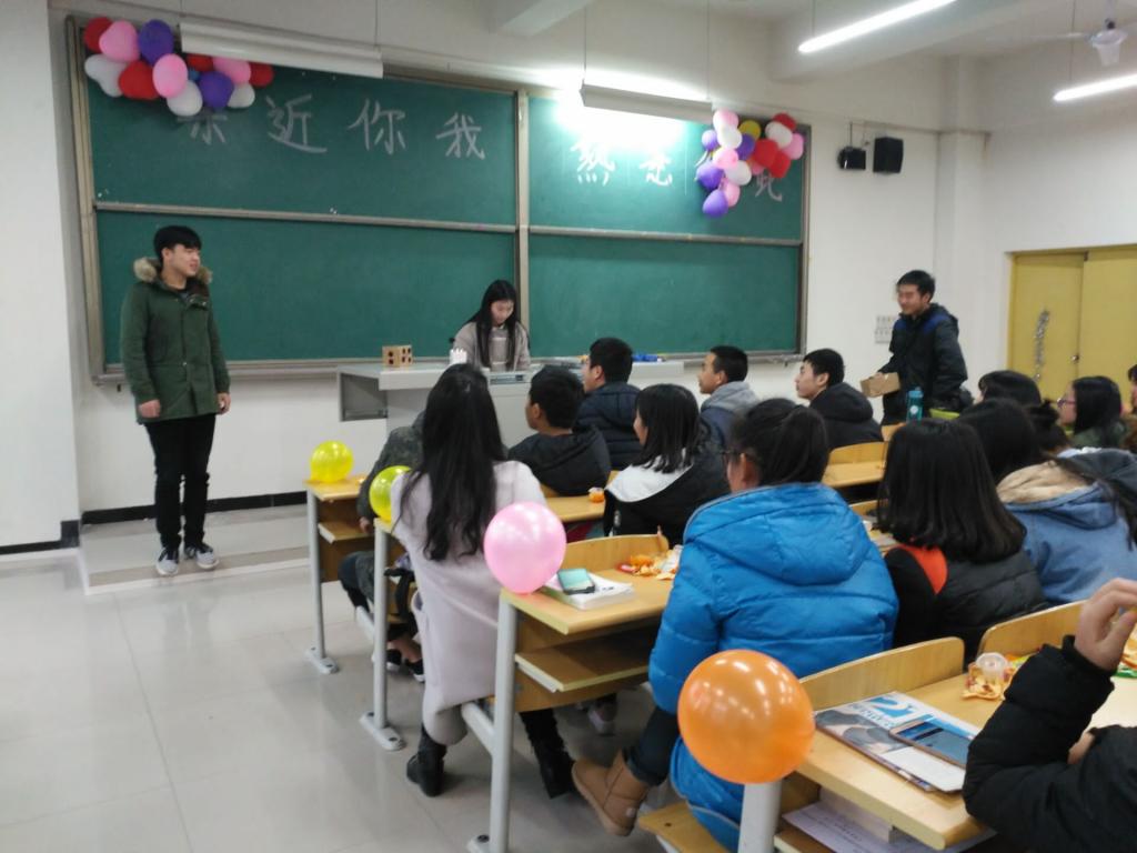 活动开始,李老师率先致辞,他强调第二学历班是一个普通而又特殊的班级,这里汇聚着我校各个学院的同学,好学上进的心让大家聚在一起,希望大家珍惜这份不寻常的友谊,尽快融入班级中去,相互熟悉,相互了解、相互学习,共同进步。随后,人力班杨晋同学一首“小幸运”点燃了现场的氛围;接下开进行的是由“传气球”、“你比我猜”、“剥桔子”组成的现场趣味活动,活动中,大家积极参与相互配合,既展示个人的才艺,又体现出强大的团队凝集力;最后,大家共同为会计班陈春艳同学庆祝生日,现场播放了由三个班同学参与的祝福视频,由于陈春艳同学事先并不知情,感动得留下了幸福的眼泪,场面十分温馨动人。